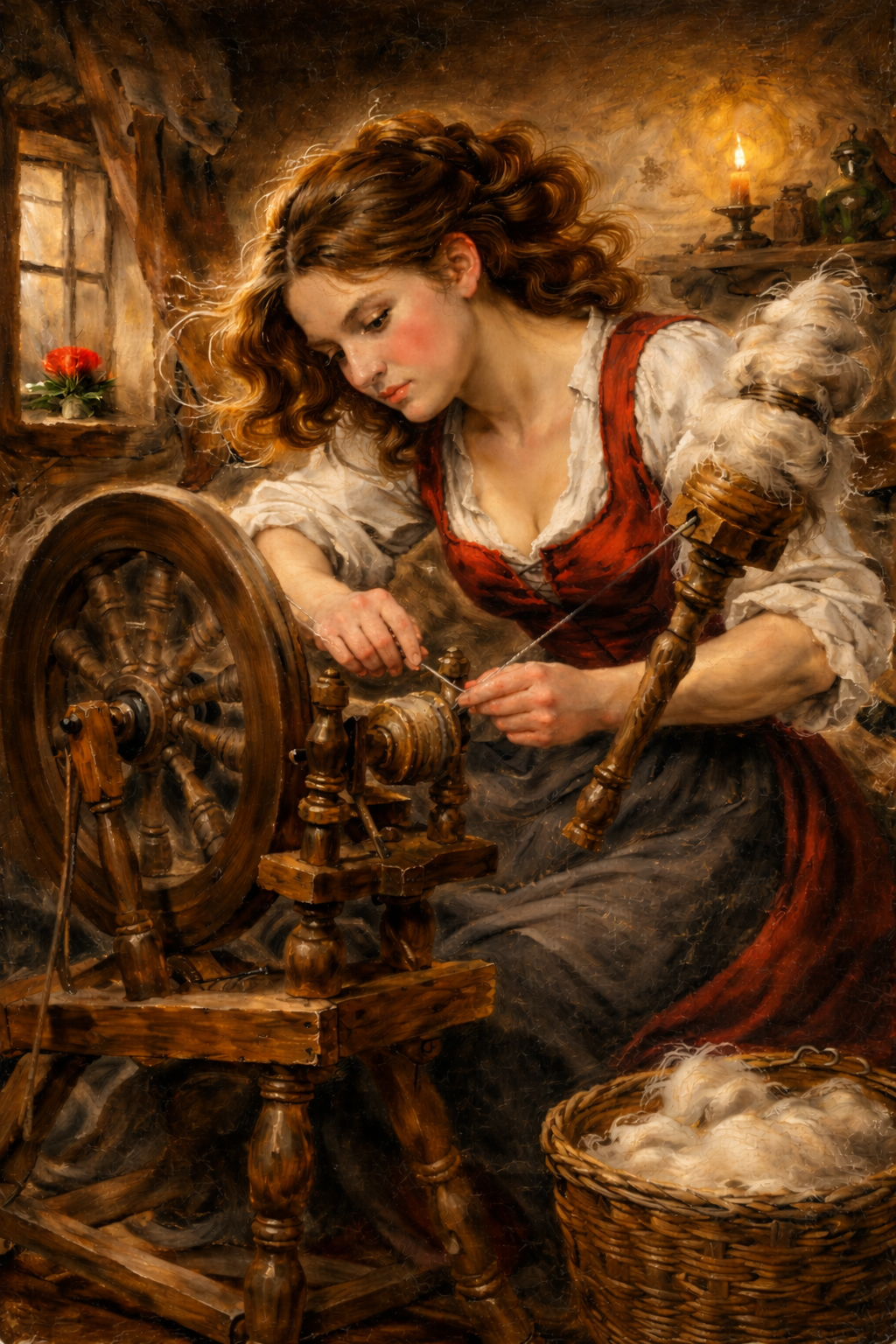 Puls & Diktion: kontinuierlicher 6/8-Kreis ohne Eile; Silben klar, Konsonanten weich gebunden. Atembögen so setzen, dass der „Spinnrad“-Fluss ununterbrochen wirkt – die Stimme „denkt“ gegen die Mechanik an.