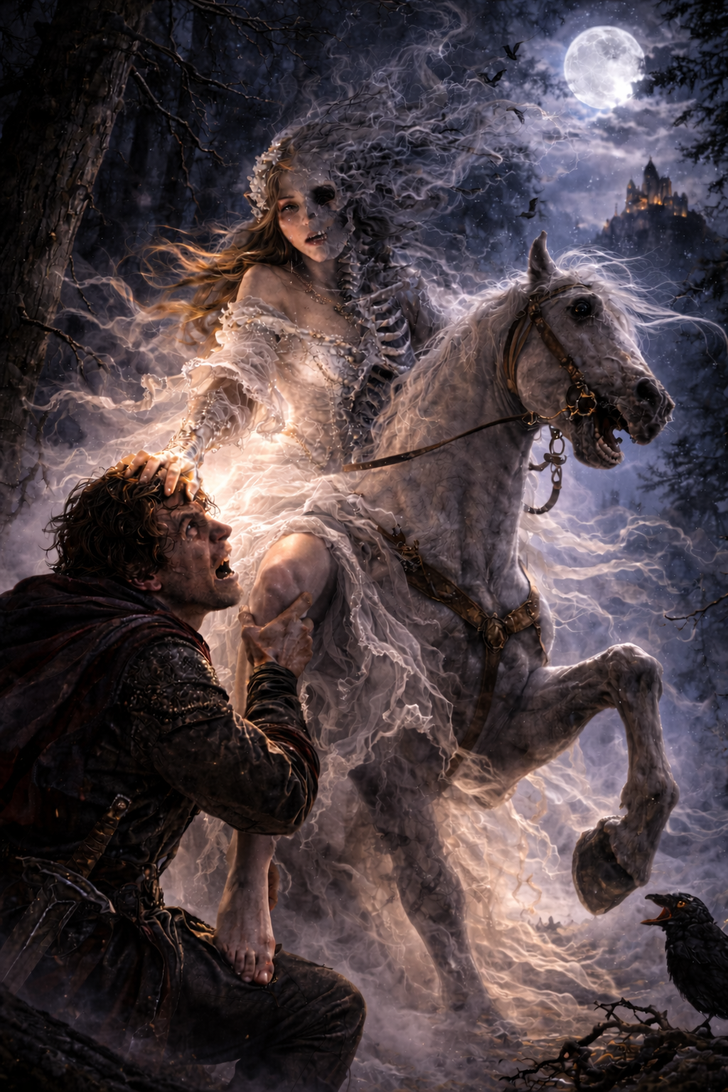 Der Text hält es offen; die Musik kann beide Lesarten tragen. Zentral ist: Die Frau warnt klar („O flieh!“), der Reiter missachtet das – hier kippt die Szene.